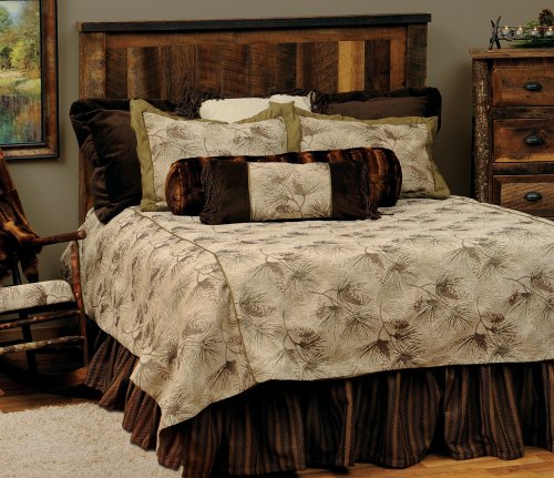 Wooded River WDK2045 Basic Set, King?Stop and smell the Pine Forest! This ensemble will bring a bit of the woods right into your home or lodge. The upgrade white pine print fabric, accented with soft suede and Beaver Brown Faux Fur along with the gathered bedskirt will draw youinto this cozy scene. Basic Set includes: bed cover, 2 shams, and bed skirt. Production Dimensions are 19-inch wide by 19-inch long. The cleaning instructions for this product are: See Individual Items.
