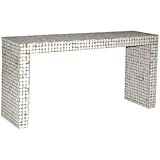FeaturesSolid MDF piece with square coconut accentMade from hardwood and coconutMade in IndonesiaAssembly required59.5 in. W x 18 in. D x 30 in. H Great conversation piece with amazing details and texture. Made of coconut shells that are laminated together and hand finished with a white patina look. Place glass on top to protect surface and extend life.some tips