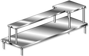 #The Aero MW Series Microwave Shelf conveniently mounts on your table to give you added space and organization. The 1-1/2 inch lip on all 4 sides keeps the microwave securely in place, and the shelf's 90 degree turn provides easy access from all angles. The shelf is made of 16 gauge Type 430 stainless steel and is polished to a #4 mill finish. Both sturdy and functional, this table-mounted microwave shelf by Aero makes a great addition to any kitchen.