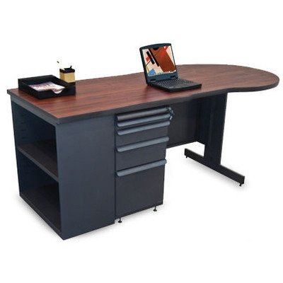 #ZTCB7530_FT_FM Laminate Color: Figured Mahogany, Finish: Featherstone Features: -36" Semi-circular conference work surface on end.-12" x 17" Pull-out writing tray.-2 Box drawers and 1 standard file drawer.-Desk configuration is reversible.-Greenguard certified.-Made in the USA. Color/Finish: -Textured powder coat is one of the most durable high quality finishes. Specifications: -End features a 14" deep bookcase with 2 shelves. Assembly Instructions: -Assembly required. Dimensions: -Dimensions: 29" H x 75" W x 30" D. Collection: -Zapf collection.