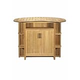 | ✚✚✚ Bronzewood Tall Tapas Dining Set BZTTT Features: -Material: Aluminum, teak.-Closed storage behind cabinet doors.-Removable upholstered seats.-Open shelving on the sides.-With 3 legged stools. Includes: -Set includes table and 2 stools. Color/Finish: -Natural finish. Collection: -Bronzewood collection. Warranty: -1 Year warranty.