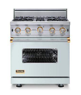 FeaturesSureSpark(TM) Ignition System From low to high, the exclusive SureSpark(TM) ignition system lights every time.VariSimmer(TM) The VariSimmer(TM) setting on Viking gas surface burners allows for precision control of ultra-low cooking temperatures.Removable Grates Cleanup is a snap thanks to easily removable burner grates, grate supports, burner bowls, drip trays, drip pans, burner caps, and knobs.Gourmet-Glo(TM) Infrared Broiler Lock in all the savory juices of even the thickest porterhouse with the intense heat of the restaurant-quality Gourmet-Glo(TM) infrared broiler. Intense heat from broiler sears meats and fish locking in juices. Viking VGIC5304BSEBR: 30" Custom Open Burner Range, Natural Gas, Brass Accent?