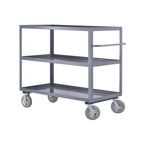 Edsal WIT732 Steel Heavy Duty All Purpose Truck, 1200 lbs Capacity, 60" Width x 55" Height x 24" Depth, 3 Shelves, Industrial Gray?Edsal 3 shelf truck all purpose heavy-duty welded trucks with 1200 pound capacity. Designed for rugged use in shops, workrooms, stockrooms, shipping and receiving departments. Prime quality heavy gauge steel. Electrically arc-welded to form one strong integral unit. Smooth finish with no rough edges. 8-inches pneumatic casters 2 rigid and 2 swivel casters. Rounded tubular push handle. Metal tray shelf. Pre-assembled. 3 Levels.